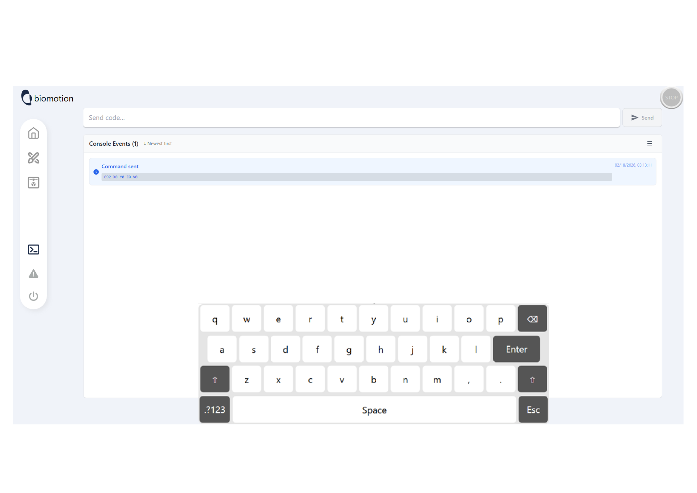G-code sending terminal and touch-optimized QWERTY + numeric keyboards for a 3D bioprinter application. Project work was under NDA, so no links or repository are available.